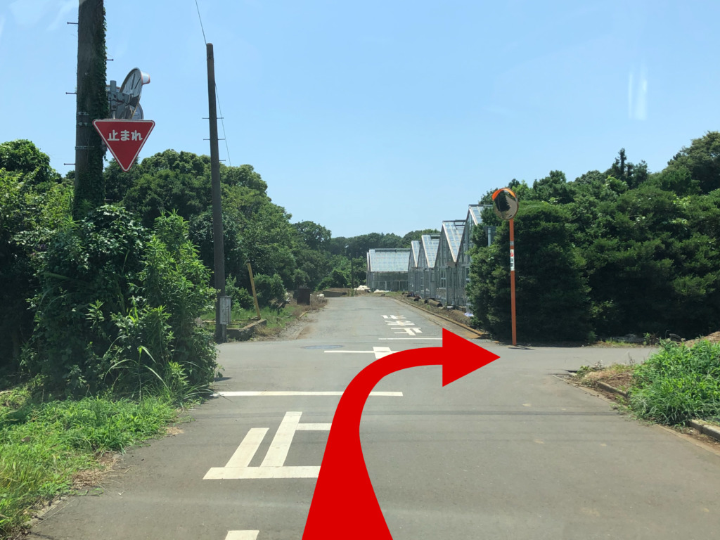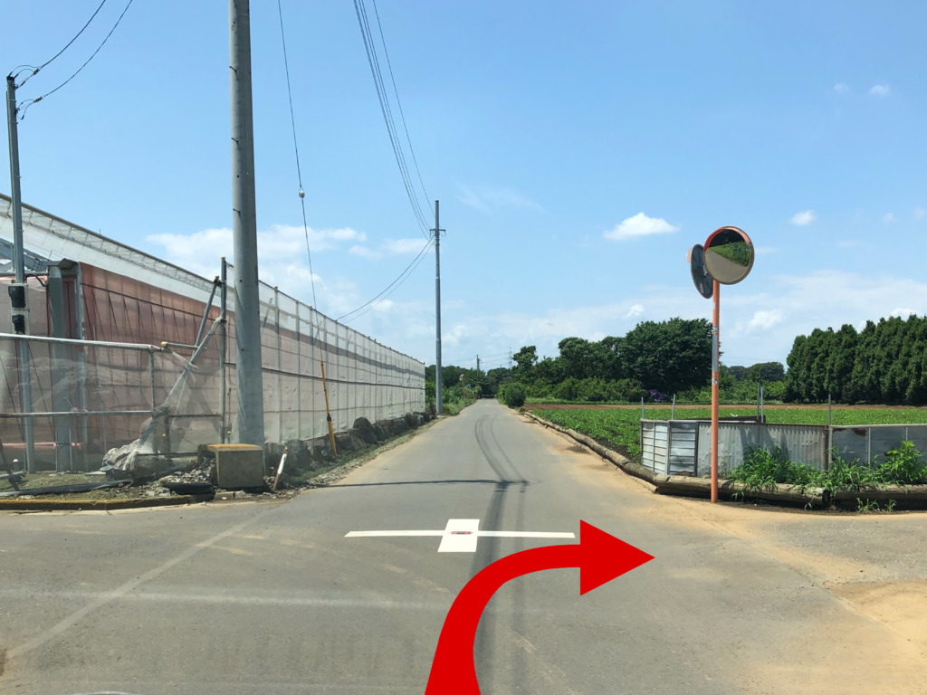 ③直進すると2つ目の十字路が見えて来るのでこちらを右折します。