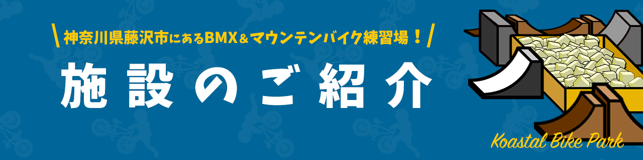 綾瀬スマートICから車で15分!KOASTAL(コースタル)が運営するBMXとマウンテンバイク専用の練習場です。神奈川県藤沢市の約1,000坪の土地にフラット、パンプトラック、ダートジャンプ、フリースタイルパーク等のエリアに加え、安全にトリックを習得するためのレジーやスポンジプールも揃っている国内で唯一の施設です。